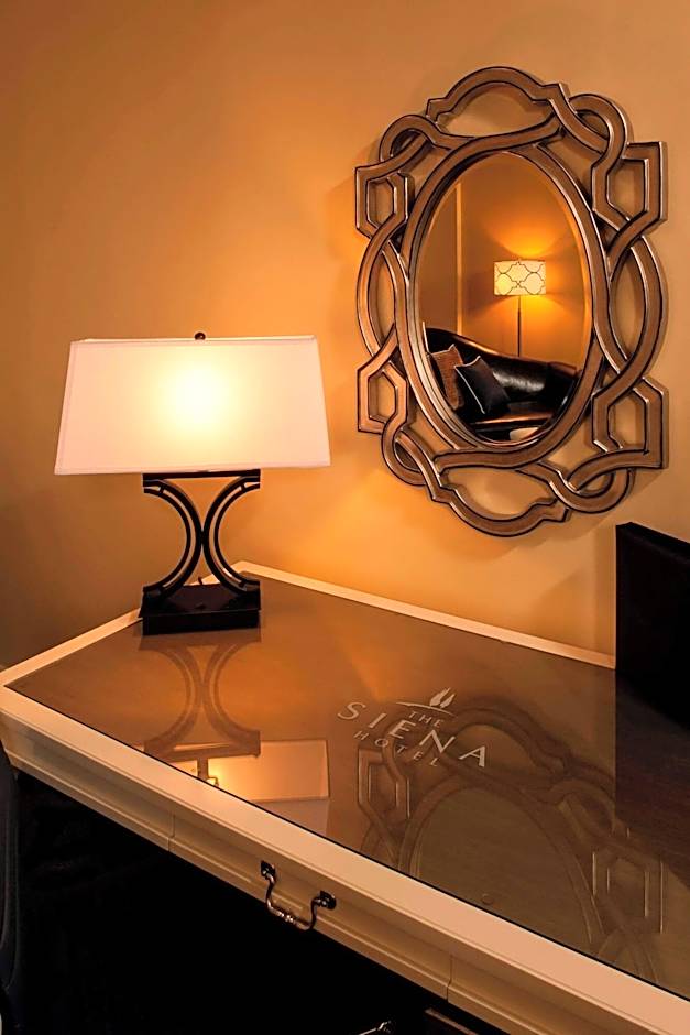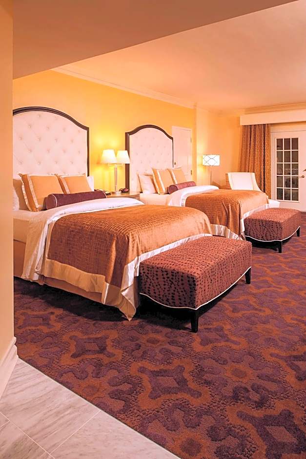 This spacious corner room features French doors, an extended foyer, and 2 balconies. A seating area with a sofa and a marble-topped desk are also provided.